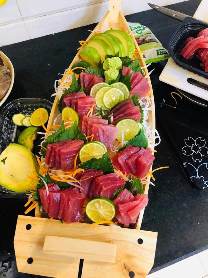 Đặc biệt nhất là ăn sushi.Thịt #cángừcắtlát tươi ngon ăn với mù tạt, rau sống. Miếng cá ngừ cuốn rau, chấm nước tương và cộng thêm chút gừng hồng thì không còn gì tuyệt vời hơn nữa.