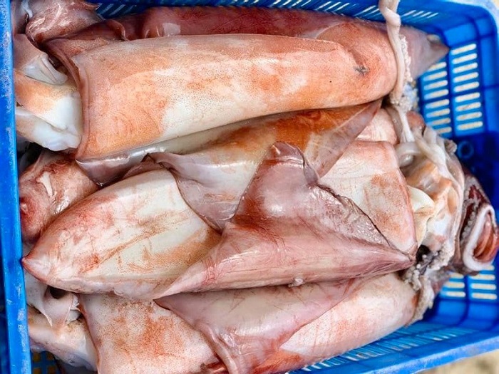 Mực lá đại dương được đánh bắt hoàn toàn tự nhiên, thân to, mỗi con nặng từ 3-10kg. Món này chiêu đãi bạn bè, người thân thì rất hoành tráng